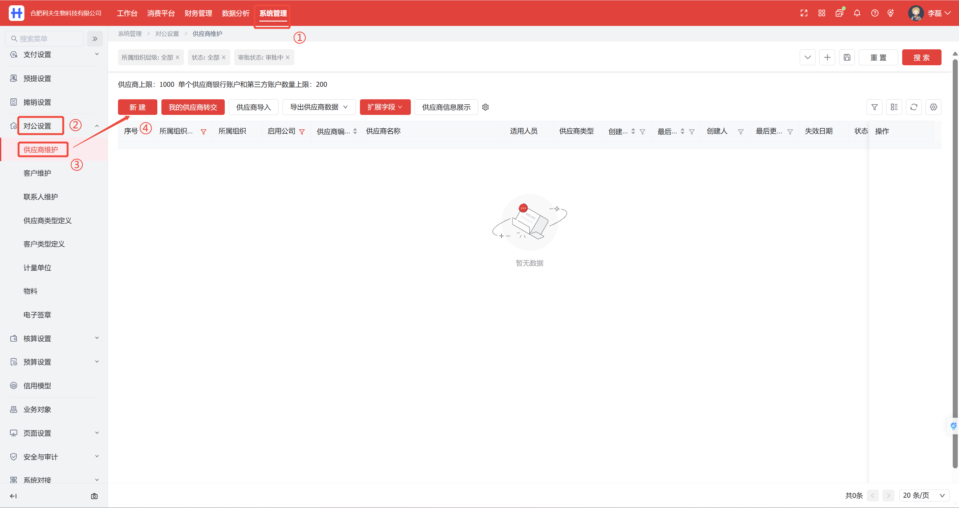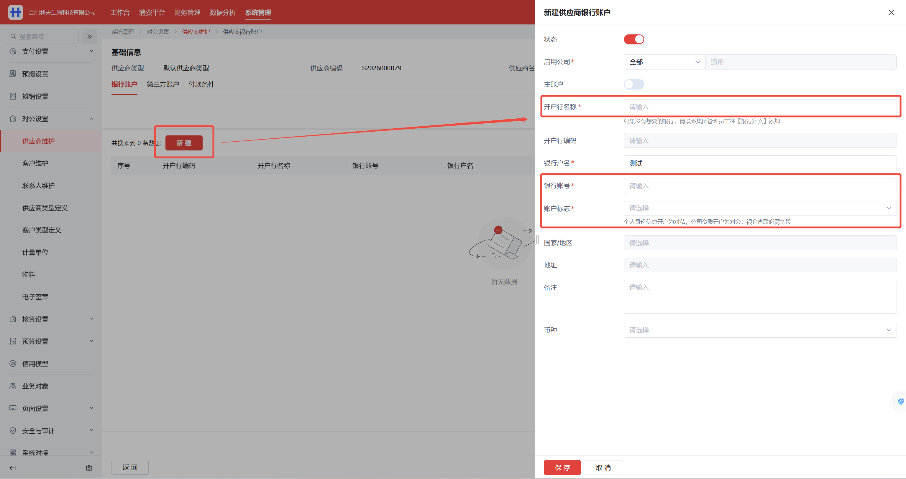 3、点击你刚才维护的供应商,录入供应商对公收款账号