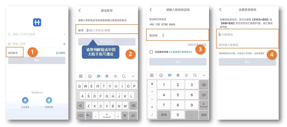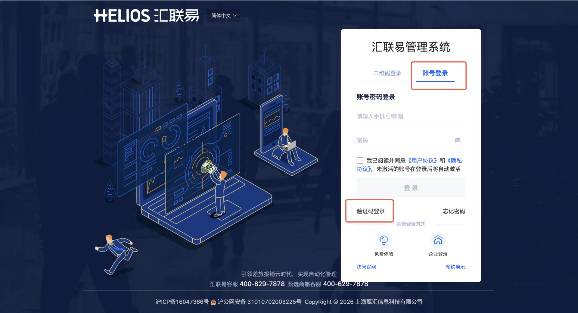 3、PC端汇联易登录及激活说明:PC端首次登录使用企业邮箱/手机号,用验证码登录(如下图);登录成功后,可设置个人报销银行卡及登录密码(如图二)