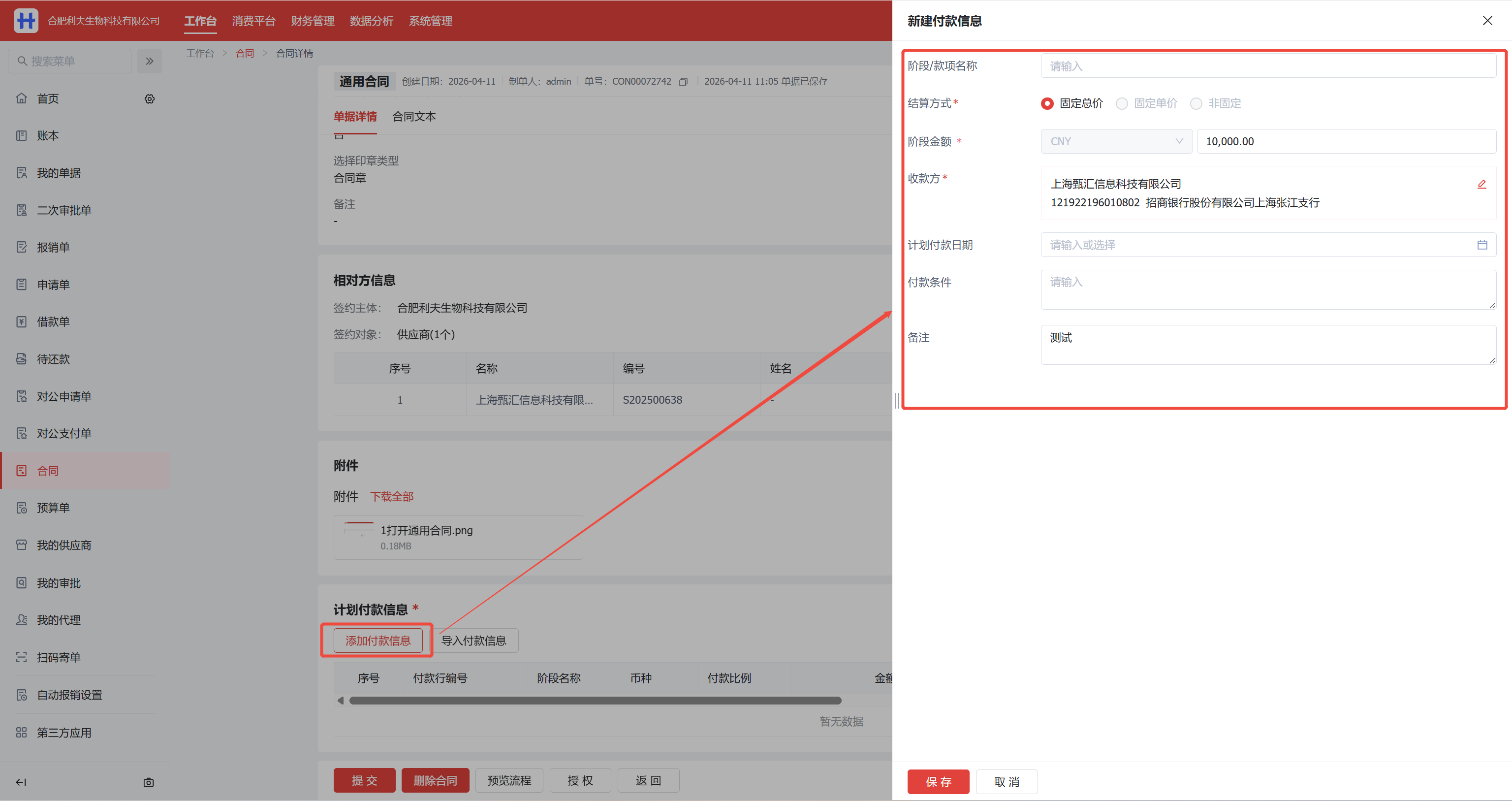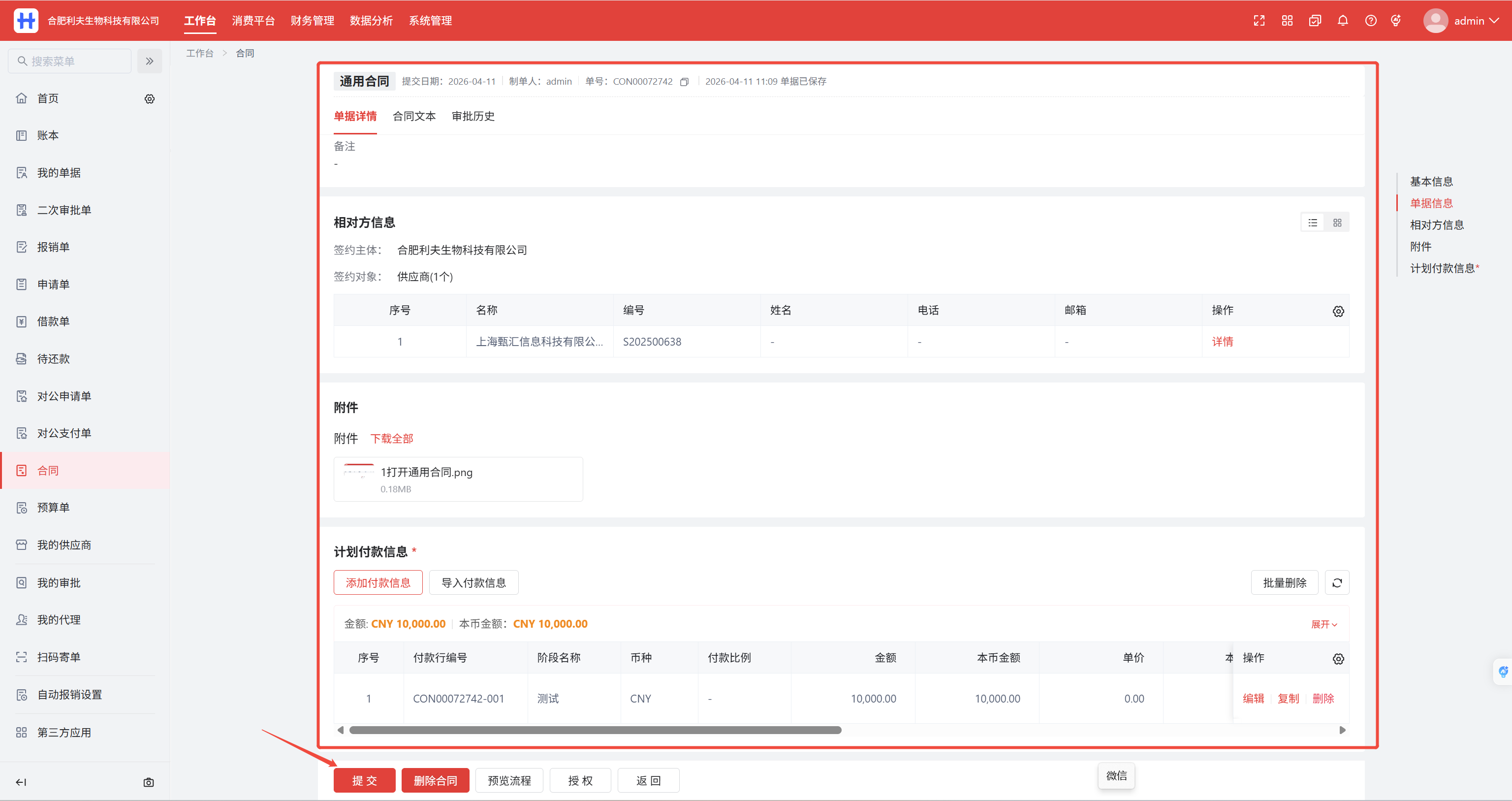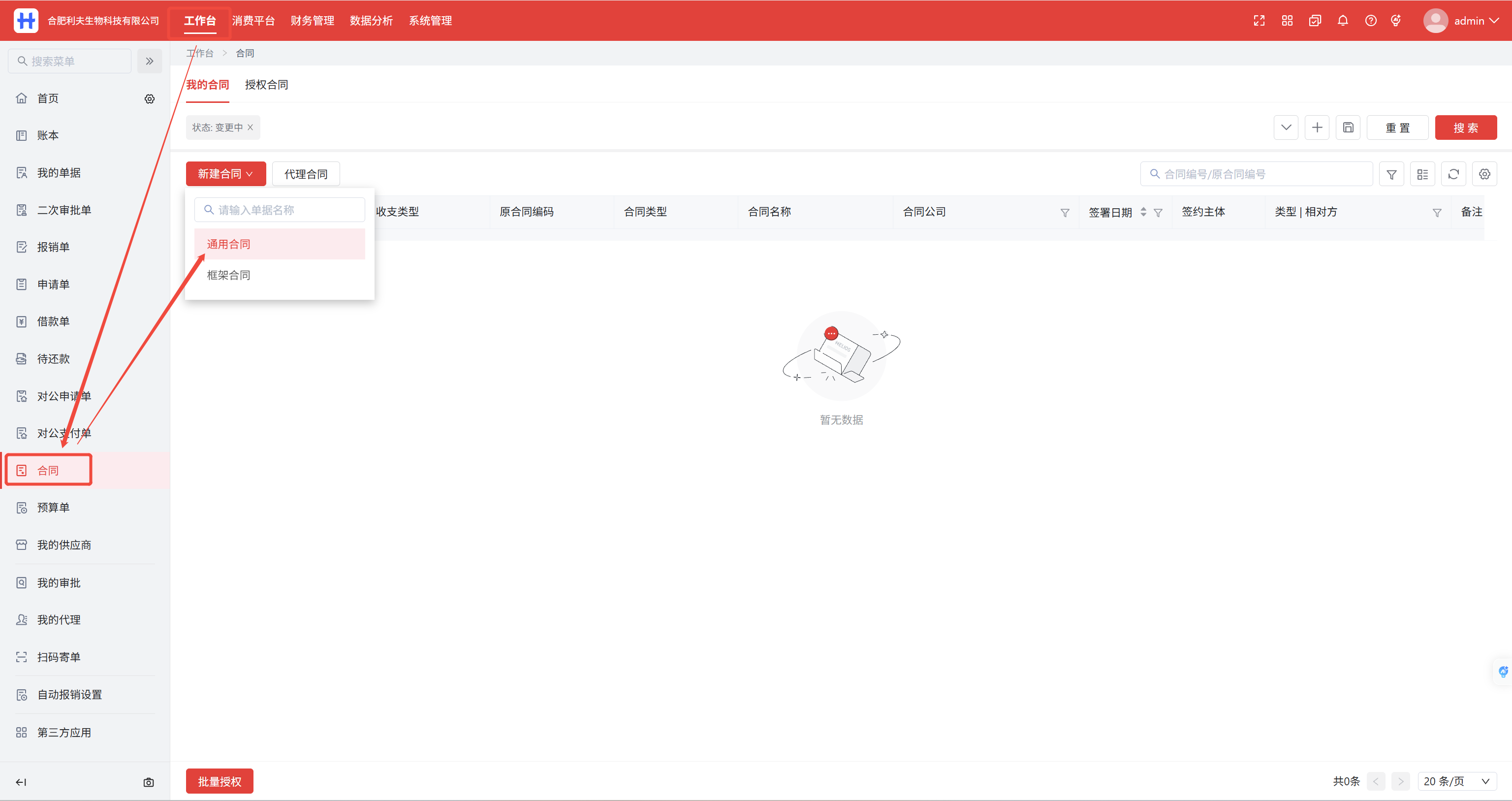 工作台>合同>新建合同>通用合同
